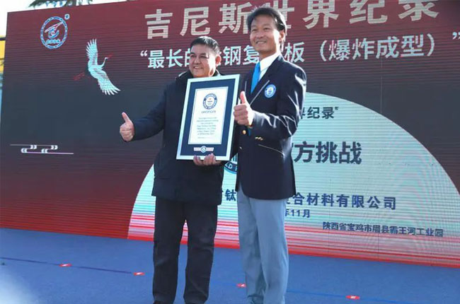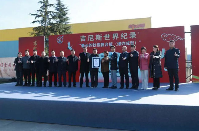 11月28日,吉尼斯世界紀錄“最長的鈦鋼復合板(爆炸成型)”官方挑戰儀式在寶雞市眉縣舉行。