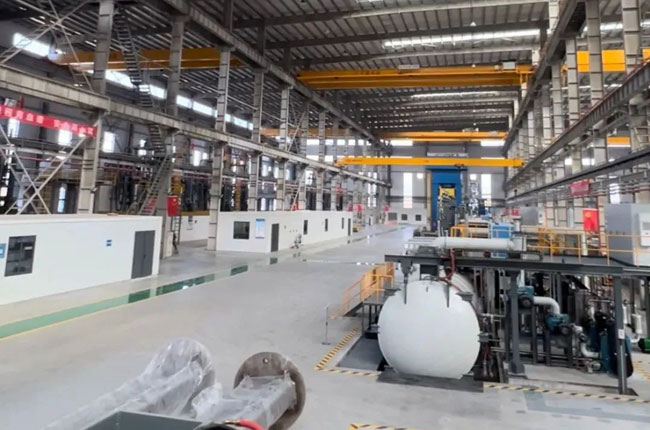 2、建設具有國內最先進的挑料、混料、布料、配料、電極壓制一體化全自動生產線,該生產線主體設備是10000噸油壓機以及混布料系統;