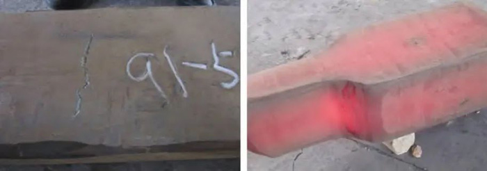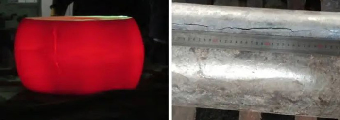 鈦合金開裂危害嚴重,不僅增加工人打磨勞動強度,降低生產效率,還會降低產品成材率。部分嚴重開裂因打磨較深,需要增加火次修整,增加生產制造成本,對于批產產品因違反已固化工藝規范,容易造成產品質量波動。更為嚴重的鍛造開裂,由于無法滿足產品交付尺寸或重量要求,導致產品報廢。
