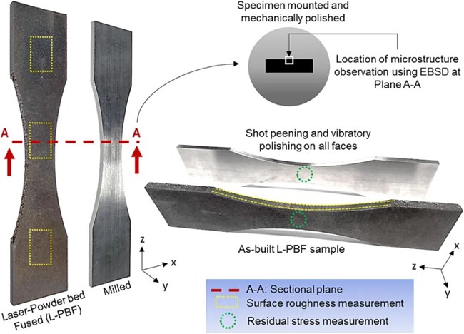 綜上所述,研究團隊對采用航空航天制造工藝,對鍛造的Ti-6Al-4V和激光粉末床熔融增材制造的Ti-6Al-4V試樣進行了對比分析。從最佳疲勞壽命和維修應用的成本效益角度解釋了制造方法的適用性。對鍛造的材料進行精細銑削,并制作L-PBF增材制造試樣,進行熱處理和后處理,以獲得最佳的疲勞分析基線。通過噴丸強化和振動拋光進一步改善試樣的表面和亞表面狀況,以提高力學性能。