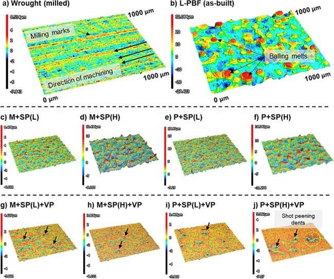 NO.2、銑削、激光粉末床熔融、噴丸強化和振動拋光后的表面粗糙度演變