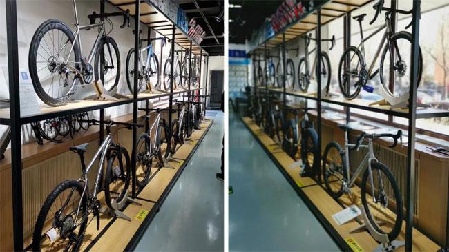 圖為航輪科技Hi-Light品牌自行車專賣店。為滿足不同功能需求,Hi-Light品牌分為山地、公路、郊游、鐵人三項、小輪車、小徑車、滑步車等近10個系列、50多種型號規格。