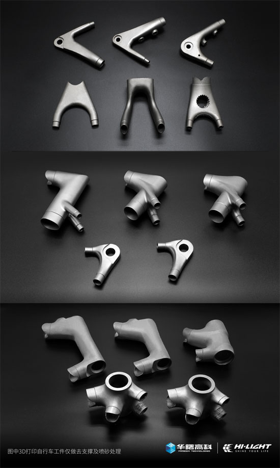 傳統方式需經精密鑄造、CNC加工、線切割、焊接、校正到表面處理等多道工序,3D打印可實現鈦合金自行車部件復雜結構一體成形,節省材料,降低成本,并避免復雜結構焊接帶來的潛在風險,如焊接殘余應力導致的變形、疲勞破壞,螺紋連接的不準確性等。