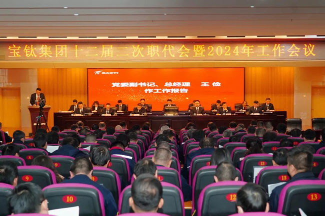 隨后,王儉作了題為《承上啟下創(chuàng)新發(fā)展激發(fā)打造世界一流鈦業(yè)強企新動能》的工作報告。他指出,2023年是“十四五”規(guī)劃承上啟下的關鍵一年。一年來,寶鈦集團認真貫徹中省部署和陜西有色金屬集團工作安排,在“兩步走”戰(zhàn)略和區(qū)域布局繼續(xù)深化中,積極應對國內(nèi)需求下降、市場結構調(diào)整、原料價格大幅波動等挑戰(zhàn),按照外圓內(nèi)方的經(jīng)營理念,優(yōu)化調(diào)整營銷策略,合理配置內(nèi)外部資源,統(tǒng)籌推進產(chǎn)鏈提升、科技創(chuàng)新、管理優(yōu)化等工作,經(jīng)營業(yè)績逆勢上揚,盈利能力進一步增強,再創(chuàng)歷史最好業(yè)績。集團被評為中國工業(yè)“碳達峰”領跑者等。