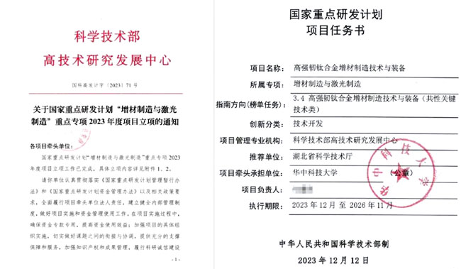 近日,由華中科技大學牽頭承擔的國家重點研發項目—“高強韌鈦合金增材制造技術與裝備”正式獲得批準立項。本項目面向航空航天領域先進飛行器對高強度高損傷容限性能的長壽命鈦合金關鍵承力構件的迫切需求,建立激光增材制造高強韌鈦合金材料設計、激光熔化沉積微區調控、多重固態相變聯動調控方法與技術,突破多束激光大型復雜鈦合金構件制造過程內部缺陷抑制和應力控制等關鍵技術,形成大型鈦合金構件抗疲勞與高損傷容限結構設計和制造方法,研制成套激光增材制造裝備,實現航空航天等領域尺寸≥1m×1m×5m的大型復雜高強韌鈦合金構件的高效高質量制造成形,并通過驗證考核,解決航空航天高端裝備大型關鍵鈦合金構件應用和安全設計的瓶頸難題,服務于航空航天領域先進型號研制生產。