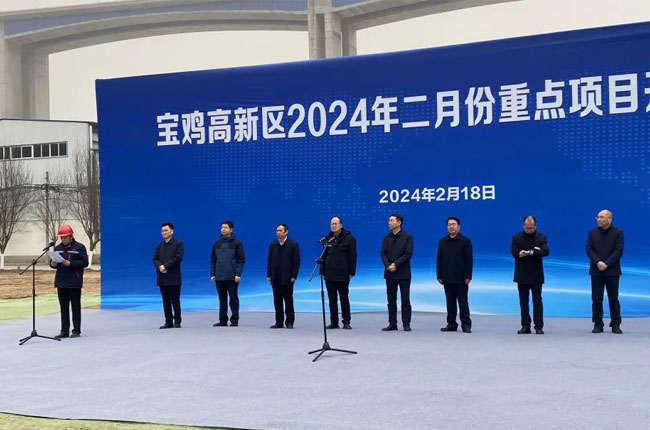 2月18日上午,寶雞高新區2024年二月份重點項目集中開工活動在寶雞市永盛泰鈦業公司低成本、高性能鈦合金短流程鍛造數字化生產線項目現場成功舉行。