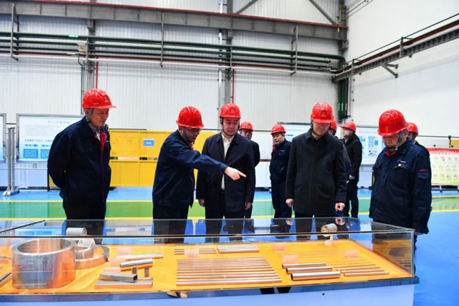 3月5日,陜西有色金屬集團黨委副書記、董事、總經理莫勇一行來寶鈦集團調研,深入寶鈦展覽館和管材廠、實驗中心、鍛造廠生產現場,詳細了解企業發展和生產經營等情況,并同寶鈦集團領導班子座談交流。寶鈦集團領導王儉、陳戰乾陪同現場調研。