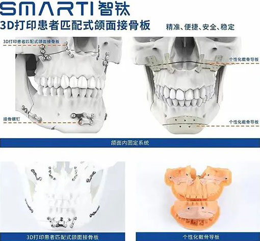 口腔頜面骨骼形態不規則、操作空間狹小、手術難度大、精度要求高。傳統接骨板難以匹配骨面就位,是手術出現誤差的主要原因,也是目前頜面骨骼手術精準實施的關鍵瓶頸。該產品通過3D打印技術成功實現接骨板的個性化設計與制造,創造性的解決了接骨板與頜骨的匹配問題,徹底打通了手術設計邁向精準實施的“最后一里路”,同時實現全流程數字化,大幅提高手術精準度,縮短手術時間,減輕了患者的醫療負擔。