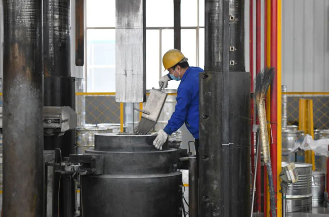 熔煉是鈦材的第一道工序。記者在該公司熔鑄車間,目睹了海綿鈦變鈦錠的神奇之旅。只見海綿鈦被4500噸的壓力機壓成一塊塊電極塊,再經過等離子焊接、熔鑄等工序,最終形成了鈦錠。“醫用鈦對純度要求極高,為了去除里面的雜質,我們要對鈦錠經過三次熔煉,以確保其成分均勻。”車間有關負責人給記者打了個比方,這個過程就像是揉面,經過反復揉,面團才會軟硬適中。