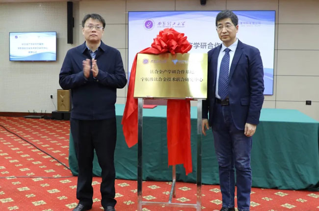 現場進行了鈦合金產學研合作基地宇航級鈦合金技術聯合研究中心及大學生就業實習基地揭牌儀式。