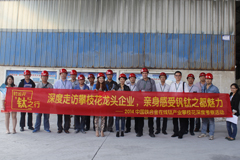 在用餐之后,考察活動成員們來到中鈦鈦業有限公司,中鈦鈦業金總對公司做了簡單的介紹。中鈦鈦業有限公司是攀枝花新中鈦科技有限公司在釩鈦產業園區內新組建的全資子公司,是一家自主創新型民營企業,公司主要從事鈦資源的綜合開發和利用。中鈦科技是國內唯一一家擁有以鈦中礦或鈦精礦為原料用濕法技術生產人造金紅石和富鈦料的高科技企業。大家一路前行,從工廠的生產車間直到成品倉庫,金總都一一對公司的產能,生產技術與考察活動成員們相互交流經驗。