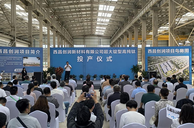 4月26日,西昌創潤新材料有限公司超大錠型高純鈦投產儀式舉行。近百名來自全國各地高純鈦業界專家齊聚西昌釩鈦產業園區,共同見證這一重要時刻。