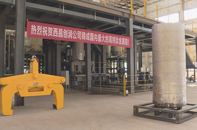 2023年5月,創潤新材料有限公司與西昌釩鈦產業園區簽約,項目正式落地西昌。不到一年時間,西昌高新投公司完成西昌創潤項目標準化廠房建設,2024年4月26日,西昌創潤項目實現投產。投產僅僅9天,西昌創潤項目第一爐就順利鍛造出國內最大高純鈦金屬錠。