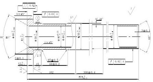 首先我們來看這個工件的加工難點,這個零件的外圓尺寸和技術條件要求都非常嚴格,難加工的地方主要是為薄壁零件的深孔加工,而且還使用了難加工的鈦合金材料:Tc6。