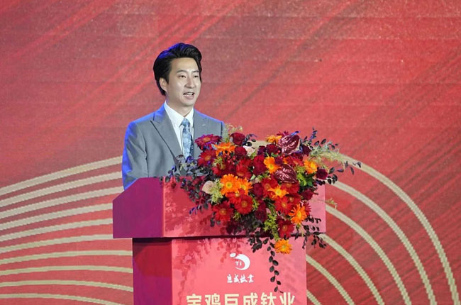 寶雞巨成鈦業股份有限公司總經理羅舉成向長期以來關心、支持企業發展的領導和嘉賓致以誠摯的感謝,對公司新廠區項目、企業發展基本情況進行簡要介紹。他表示,巨成鈦業高端裝備制造項目的順利投產是寶雞市各位領導專業指導、工作人員大力支持、合作伙伴信任厚愛、全體員工辛勤付出的共同成果。未來,巨成鈦業將繼續扎根寶雞,深耕鈦行業領域,堅持創新驅動,加大研發投入,不斷提升產品質量和技術水平,為寶雞經濟發展、為鈦行業貢獻力量。