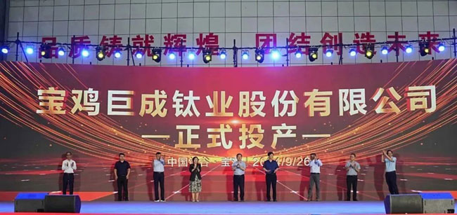 9月26日上午,寶雞巨成鈦業股份有限公司新廠區一期鈦谷稀有金屬高端裝備制造產業園項目正式投產。寶雞市委常委、市委秘書長佘俊臣,市工信局局長巨緒昌,市經濟合作局局長韓明芳,市發改委副主任胡勃,市科技局副局長牛冠軍,高新區管委會副主任劉建軍及寶雞市政府各部門代表、寶雞鈦業協會、金融機構嘉賓、巨成鈦業重要客戶、合作伙伴代表300多人受邀出席投產儀式。