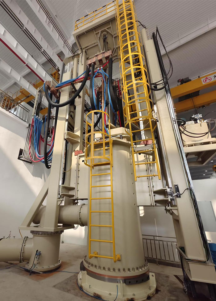 (5)真空自耗電弧爐結(jié)合國內(nèi)外先進技術(shù),與寶鈦裝備聯(lián)合開發(fā),配備了X-Y自動對中功能和高精度抗干擾的稱重系統(tǒng)。此外,采用國內(nèi)最先進的高效率螺桿泵來提供可靠的真空系統(tǒng),采用最優(yōu)良的銅銀合金輔助導(dǎo)電柱,確保了熔煉過程的安全穩(wěn)定。