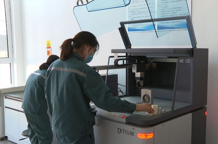 在該公司企業技術中心原輔料分析室內,工作人員正在進行滴定化學分析,這一操作是用來判斷樣本含量是否合格。走進生產車間,全自動化的生產線有序運轉,銀灰色的海綿鈦產品正在24小時不間斷生產。