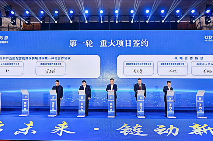 鈦材料(婁底)全產(chǎn)業(yè)鏈招商項目集體簽約活動由省工信廳、省商務廳和婁底市委、市政府共同主辦,是2025中國產(chǎn)業(yè)轉(zhuǎn)移發(fā)展對接活動(湖南)的首場地方配套活動,也是推動中部地區(qū)“材料谷”出新出彩、婁底高質(zhì)量發(fā)展爭先創(chuàng)優(yōu)的重要舉措。活動旨在加強與鈦材料產(chǎn)業(yè)領域?qū)<覍W者、相關企業(yè)交流合作,推動產(chǎn)業(yè)集群發(fā)展,實現(xiàn)互利共贏,共同開拓鈦材料產(chǎn)業(yè)發(fā)展的廣闊天地。