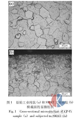 1) 經smat處理工業純鈦表面納米化后,由于表面納米層的細晶強化、高密度位錯和形變孿晶作用可以提高工業純鈦的硬度。