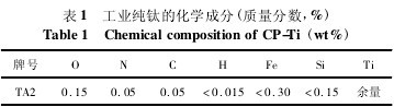 試驗材料選取厚度為10mm的退火態工業純鈦(cp-ti)板材,其化學成分如表1所示。將板材切割成100mm×100mm×10mm試樣,在smat處理前對其進行除銹、去油、磨邊等處理。