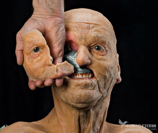透過人臉模型,可以看到裝在一名病患臉部下的鈦板,這名病患因癌癥失去了頰骨、上顎及右眼。工程師以數字掃描病患未受損的另一側臉部后,再用3D打印機印 出植入物。透過人臉模型,可以看到裝在一名病患臉部下的鈦板,這名病患因癌癥失去了頰骨、上顎及右眼。工程師以數字掃描病患未受損的另一側臉部后,再用 3D打印機印出植入物。