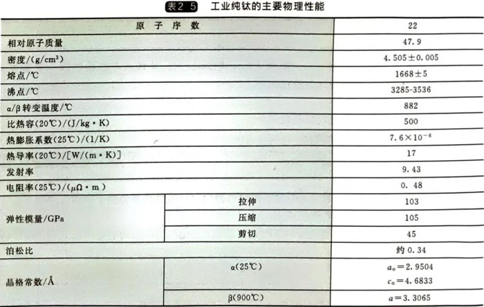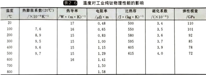 溫度對工業純鈦物理性能的影響列于表2-6.