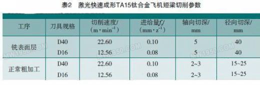 激光快速成形TA15鈦合金飛機短梁構件在加工表面層和正常粗加工時的銑削參數如表2所示(刀具材料均為Y330A)。