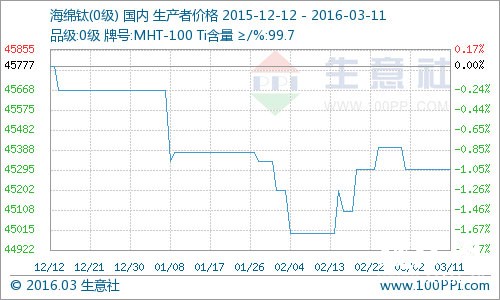 目前海綿鈦上游價格以穩為主,下游需求比前期高漲,部分大型廠家出現貨源供不應求的局面。據生意社數據分析師預測:后期鈦市不乏上漲的可能,但是上漲空間有限。