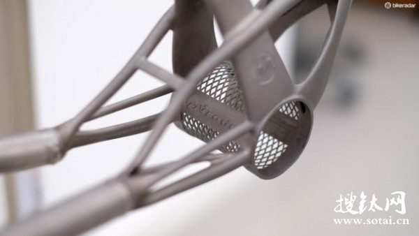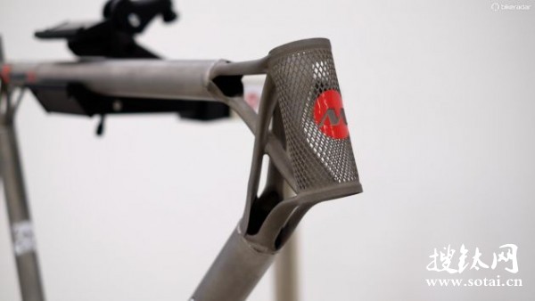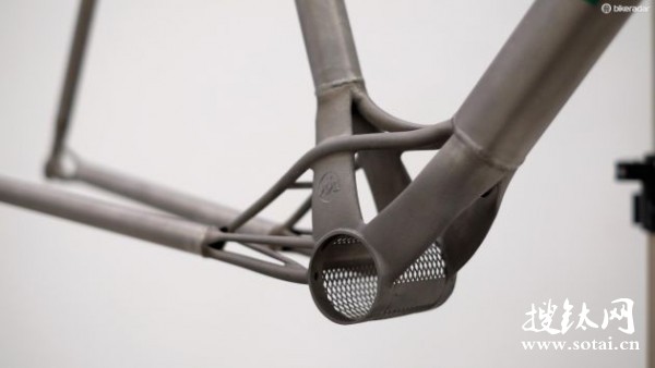 3D一體打印成型的五通同樣做了可怕的鏤空。如果把五通件當(dāng)做一個整體來看,絕對算得上“粗壯”,不過這大膽的造型給人的視覺感受多少有點不放心。但是按照設(shè)計師的說法,這種巨大的一體結(jié)構(gòu)五通讓焊接變得更加簡單,同時消除焊接應(yīng)力。