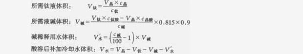 v′水——把堿液稀釋至100g/L所需要的水量,L;