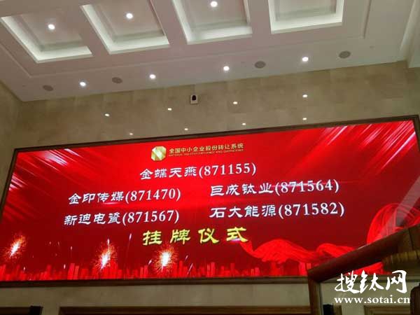 6月29日,對于寶雞巨成鈦業股份有限公司來說是一個特別的日子,公司股份成功在“新三板”掛牌。公司股份上市“敲鐘儀式”在北京金陽大廈“全國中小企業股份轉讓系統”舉行。掛牌上市后證券簡稱:巨成鈦業,股票代碼:871564。