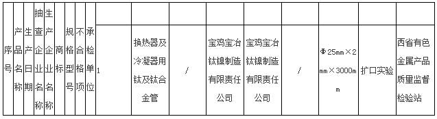 抽查發現有1批次產品不符合標準要求,涉及鈦及鈦合金加工產品的擴口實驗項目不合格。