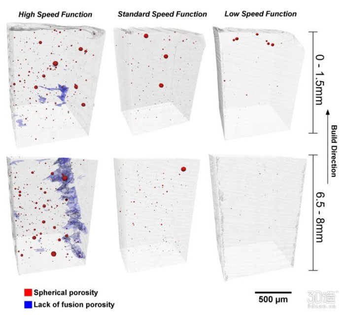 另外,CMU的研究團隊還發現了會影響孔隙率的因素,主要就是3D打印機的激光束功率、速度和間距。在使用EBM技術和Ti-gAI-4V進行的實驗中,盡管他們在不斷地調整了上面這些參數,但是始終沒能完全消除打印件內部的孔隙。