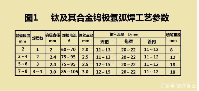 鈦管的焊接參數非常重要,常用鈦合金管的焊接工藝參數見圖1。