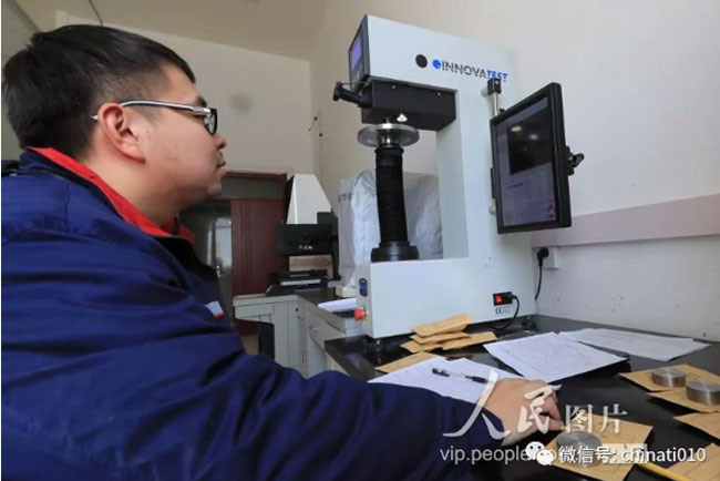 工作人員在新疆湘晟新材料檢測中心進行產(chǎn)品樣品檢測。