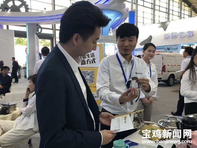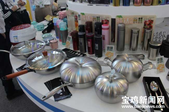 大到蒸鍋、電飯煲,小到太陽鏡、保溫杯、兒童餐具……在第四屆絲博會上,寶雞館的鈦生活產品受到了參觀者的熱捧,展臺前的人流久久不散。
