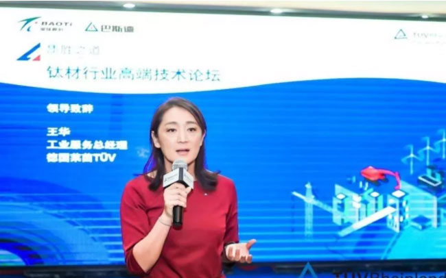 上午9點, T?V萊茵大中華區工業服務總經理王華向此次活動的協辦單位表達了由衷的感謝,王華在致辭中表示,這是首次由國際第三方機構攜手行業龍頭、行業協會對國際鈦材市場的要求作綜合性匯報,讓鈦材產業鏈相關企業通過T?V萊茵更加準確、直觀地了解國際市場要求,不斷提升產品品質,助力國內企業與國際市場接軌。