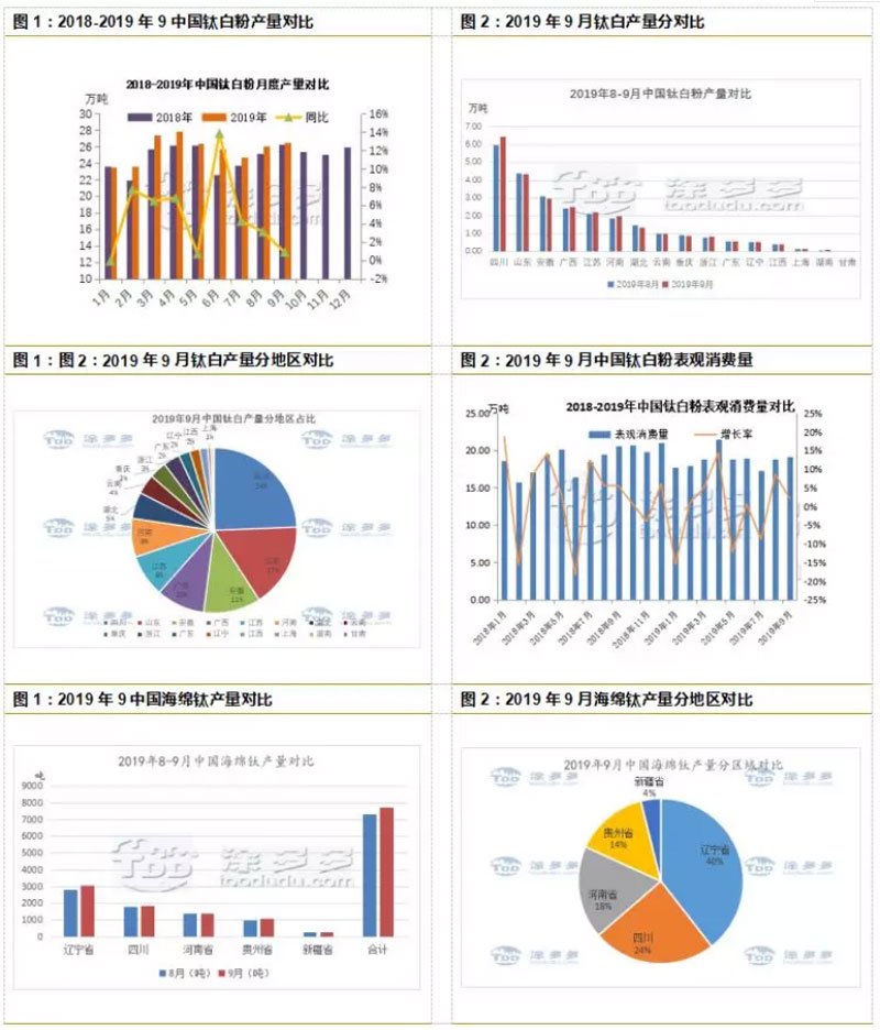 根據(jù)涂多多統(tǒng)計(jì),2019年9月中國海綿鈦產(chǎn)量7700噸,環(huán)比8月上升5.2%,9月四氯化鈦原料供應(yīng)緩解,市場產(chǎn)能多有所釋放。