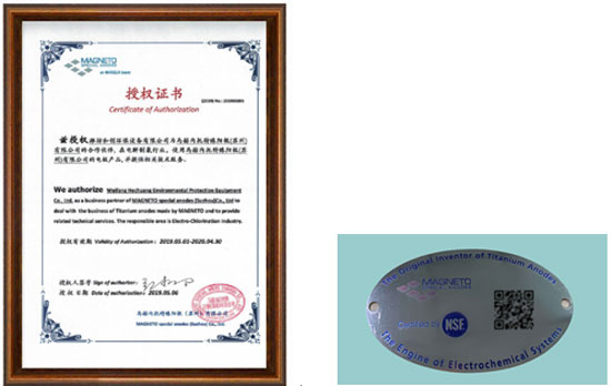 1. 電解槽陽極選用Ta1以上等級的純鈦為基材+MMO特殊技術涂層(使用釕、銥等貴金屬的氧化物進行重復涂層)保證析氯效果,提高設備效益。