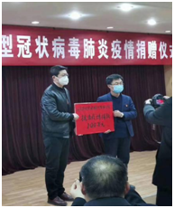 2月9日山東東佳集團在博山舉行愛心企業抗擊新冠肺炎疫情捐贈儀式上捐贈100萬,助力打贏病毒防疫戰。