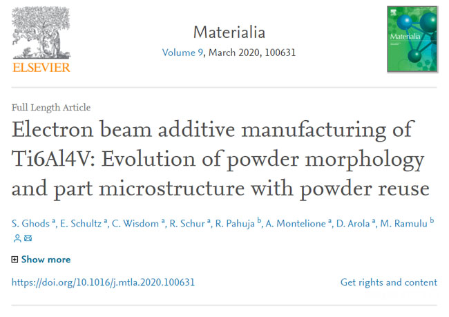 該研究的更多細節(jié)可以在題為“ Electron beam additive manufacturing of Ti6Al4V: Evolution of powder morphology and part microstructure with powder reuse”中找到。它由S. Ghods,E。Schultz,C。Wisdoma,R。Schur,R。Pahuja,A。Montelione,D。Arola和M. Ramulu合著。