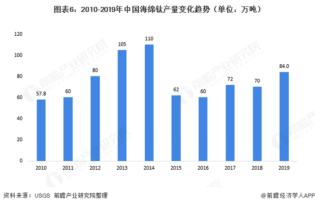 產量方面,2019年,中國海綿鈦產量也有所提升,達84萬噸,較2018年增長了14萬噸。總體來看,我國鈦產業的供給側改革初見成效,轉型升級趨勢向好。