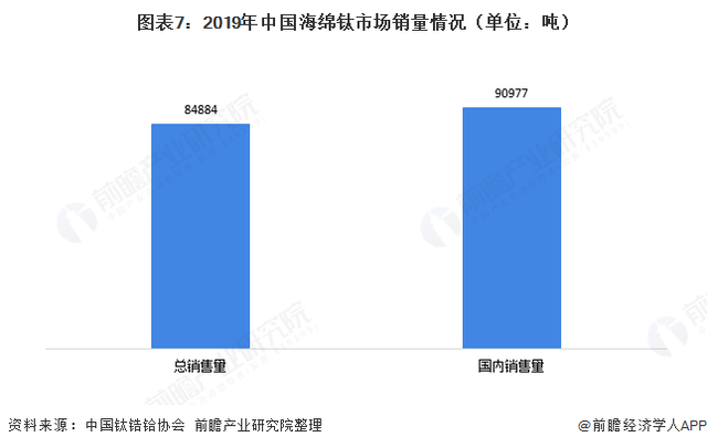 在中國海綿鈦市場需求方面,2019年,中國鈦行業在以航空航天為龍頭的高端行業需求牽引下,我國海綿鈦總銷量達84.88萬噸,其中國內市場銷量達90.97萬噸,較2018年增長了15.7%。