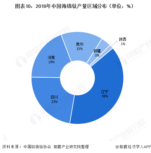 在區域競爭格局方面,2019年,遼寧省是我國海綿鈦的主要生產地,產量占比達39%;其次是四川省,產量占全國比重的23%,得益于攀鋼鈦業的產能釋放。