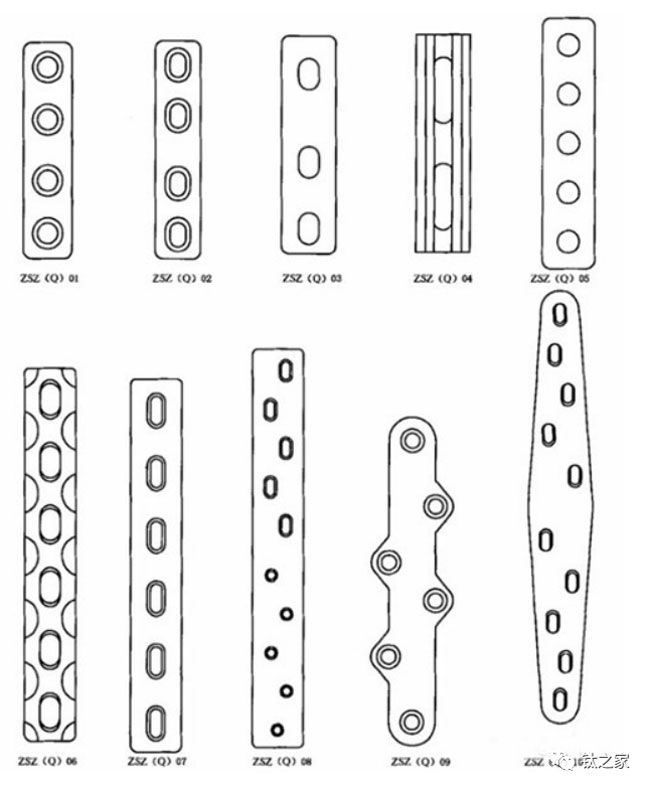 其實,身體不同部位從頭上的顱骨到腳部的趾骨,鈦合金接骨板的種類很多,同一部位還有不同厚度長度形狀等等。以國內的金屬接骨板的醫用行業標準來說吧,標準中的部分典型直型接骨板: